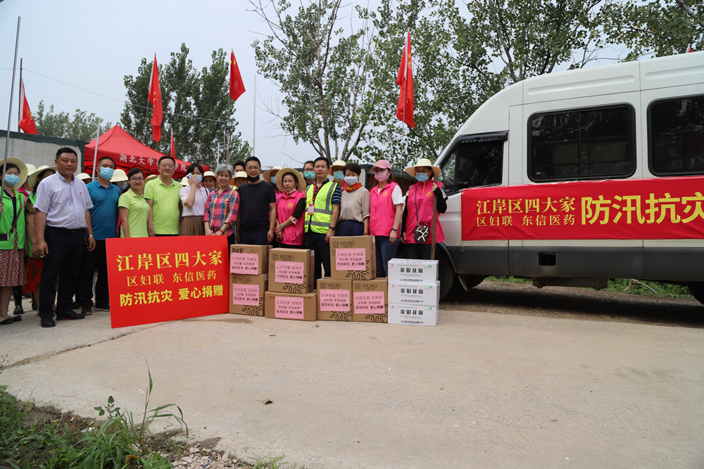 7月17日上午,江岸區(qū)人大副主任高輝,區(qū)政協(xié)副主席曾艷紅,區(qū)婦聯(lián)羅麗萍主席、黎碩副主席、吉喆主任和湖北東信醫(yī)藥有限公司防汛抗洪領(lǐng)導小組成員總經(jīng)理黃少偉、副總經(jīng)理李建軍、黨支部書記張琳、工會主席付均一道,分乘多輛防汛抗災慰問專車,向不分晝夜,堅守在防汛一線的抗洪防汛人員送去了藿香正氣水、金銀花露、植物驅(qū)蟲水、蟲咬凝膠等共計價值23萬元的防汛救災物資。