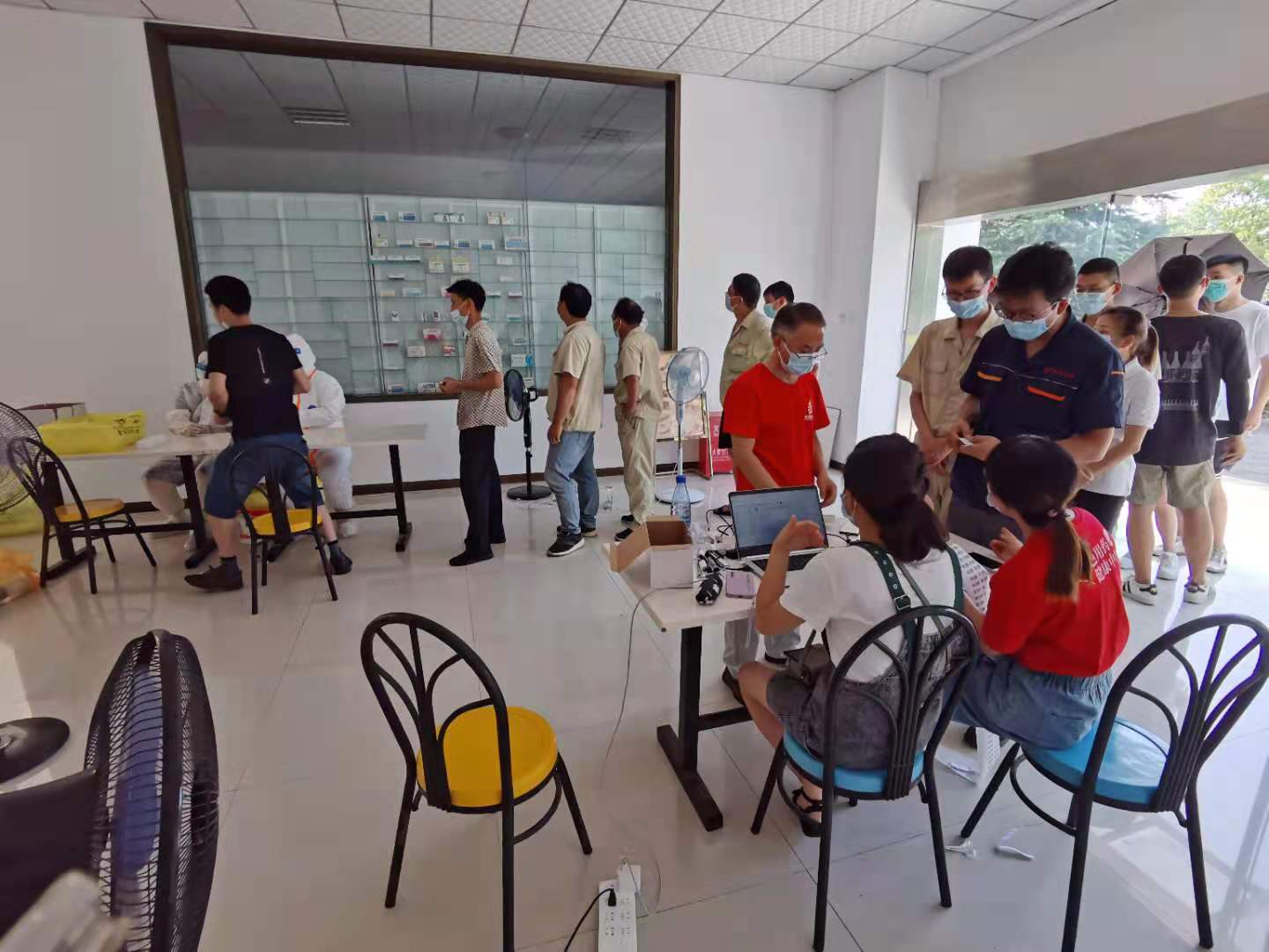 8月4日清早6點黨支部書記劉文富驅(qū)車前往指定地點接核酸檢測醫(yī)護(hù)人員和工作人員,支部的黨員工作人員提前到位。7點鐘準(zhǔn)時開始,一直到晚上8點40分,共對園區(qū)企業(yè)員工及其部分家屬人員、武漢東信醫(yī)藥科技有限責(zé)任公司和集團(tuán)儲運部全員830人進(jìn)行了核酸檢測,超額完成了任務(wù)。