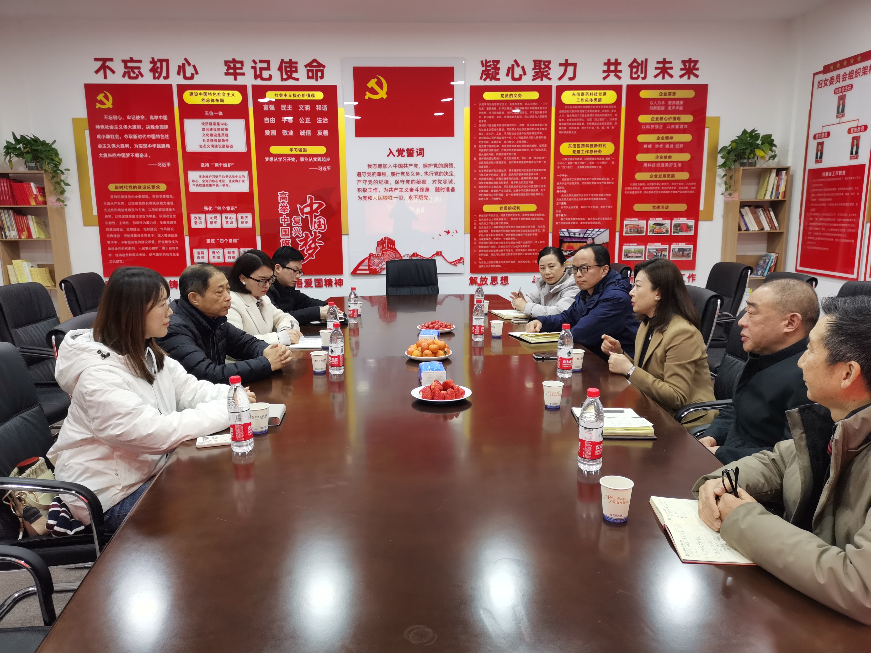 2月15日,武漢同濟(jì)科技集團(tuán)股份有限公司(下稱:同濟(jì)科技集團(tuán))董事長黃畦一行蒞臨武漢東信醫(yī)藥科技有限責(zé)任公司(下稱:東信醫(yī)藥科技)商談合作事宜。東信醫(yī)藥集團(tuán)董事長田南希,東信醫(yī)藥科技總經(jīng)理陳長根、副總工程師鄭學(xué)文、副總工程師劉文富、總經(jīng)理助理付均出席座談會。