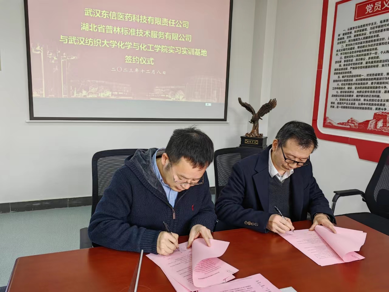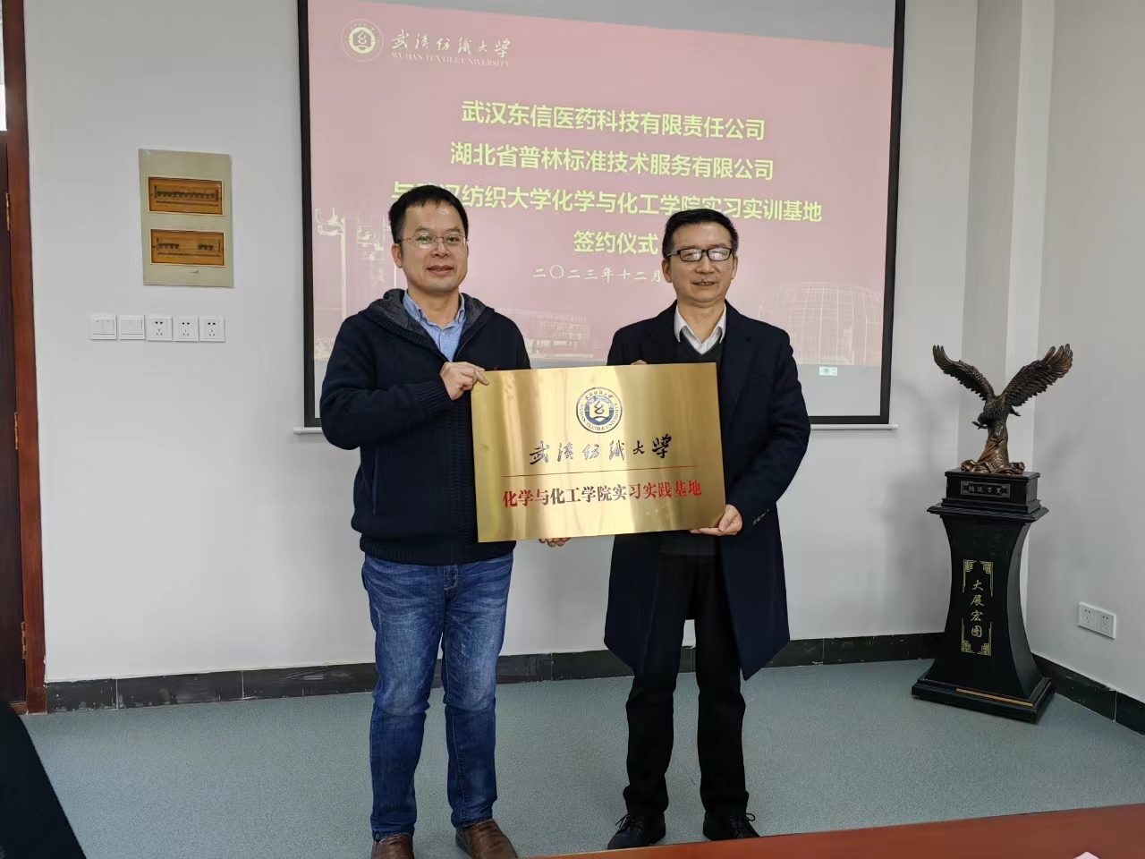 2023年12月8日,武漢東信醫(yī)藥科技有限責(zé)任公司黨支部書記劉文富受邀前往武漢紡織大學(xué),參加實(shí)習(xí)實(shí)訓(xùn)基地簽約授牌儀式。