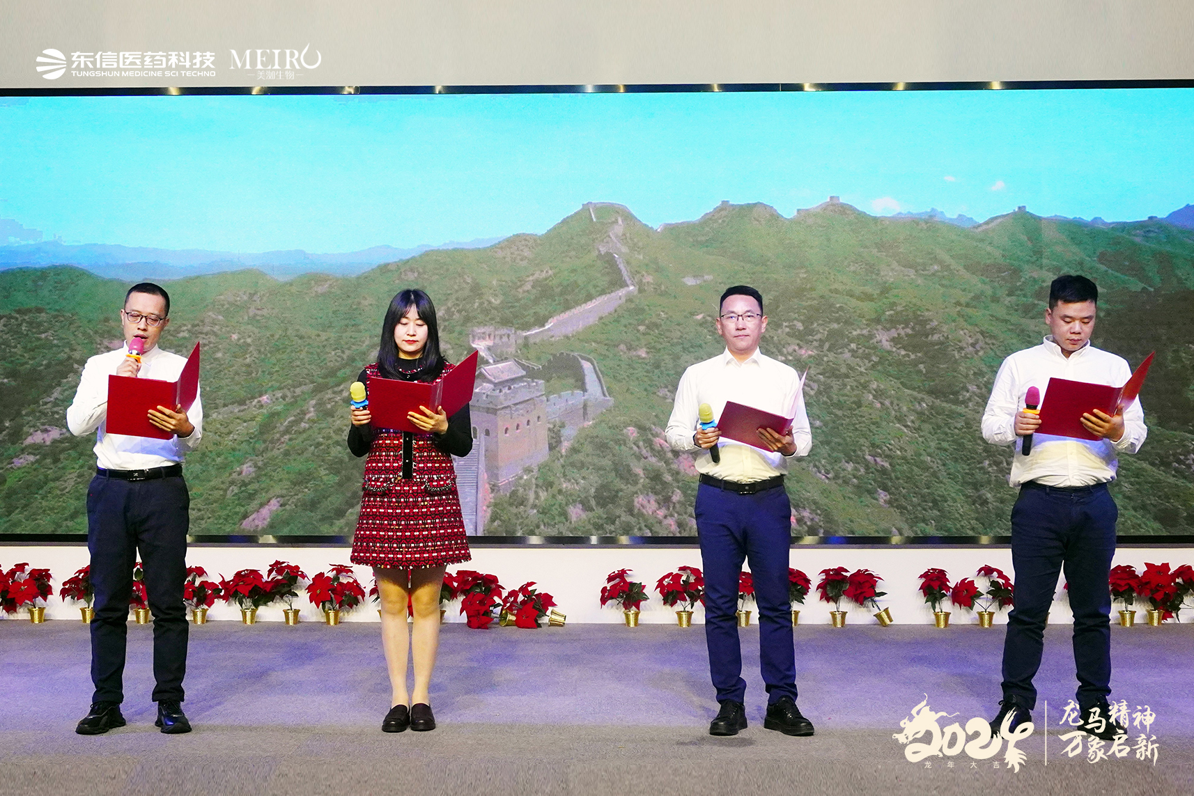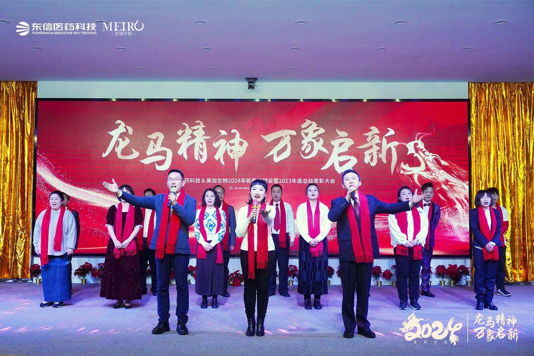 金龍起舞慶新春,萬象更新展宏圖。2024年2月4日,武漢東信醫(yī)藥科技有限責(zé)任公司(下稱:東信醫(yī)藥科技)和武漢美洳生物科技有限責(zé)任公司(下稱:美洳生物)在武漢隆重舉辦2024年新春團(tuán)拜會暨 2023年度總結(jié)表彰大會,總結(jié)工作,表彰先進(jìn),點亮新起點,踏上新征程。